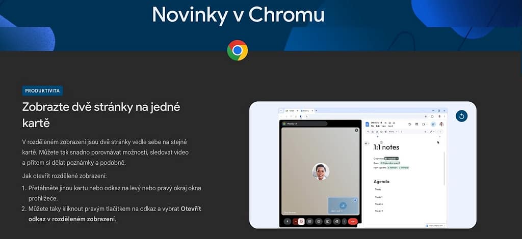 Pokud rádi využíváte prohlížeč Chrome od Google, možná jste zaznamenali, že po vás poslední dobou dost často vyžaduje aktualizaci. Důvod je jednoduchý – internetový gigant do toho poměrně dost „šlape“ a do svého prohlížeče implementuje další a další vychytávky. Pojďme se tedy podívat na některé skryté poklady nejnovější verze Chromu a jak je můžete využít pro svou každodenní produktivitu.