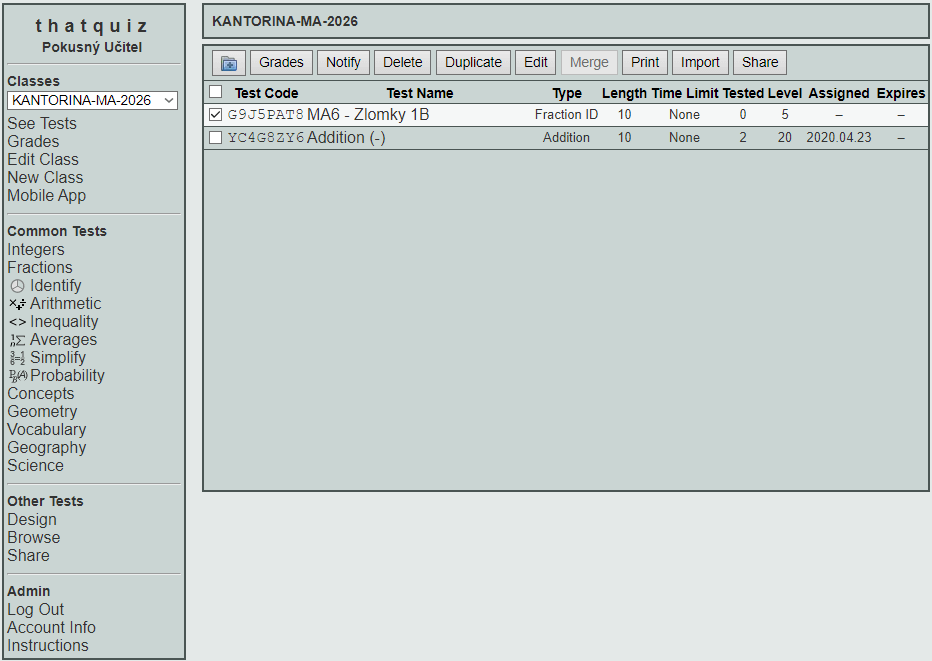 Slíbil jsem sofistikovanější funkce a přehled o chybách. Takže pojďme na to… Vytvořili jsme test(y) pro určitou třídu, žáci vše doma nebo ve škole v hodině vyplnili a my chceme prozkoumat a rozebrat výsledky.