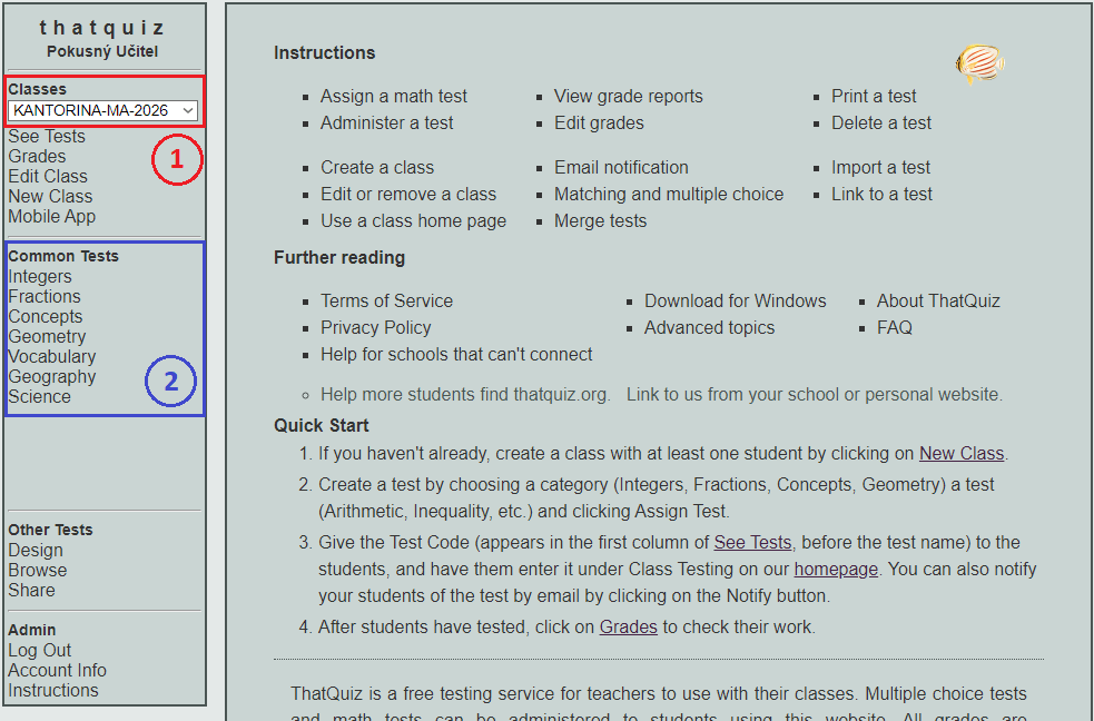 Na začátku se určitě hodí připomenout (viz I. díl povídání), že k používání ThatQuizu NEMUSÍ mít účet ani učitel ani žák. Zvláště na rychlé procvičování (ve škole i doma), využití času u zdatnějších (samozřejmě i u slabších) žáků nebo na „zahřívačky“ a nastartování myšlení na začátku hodiny to ani není potřeba.