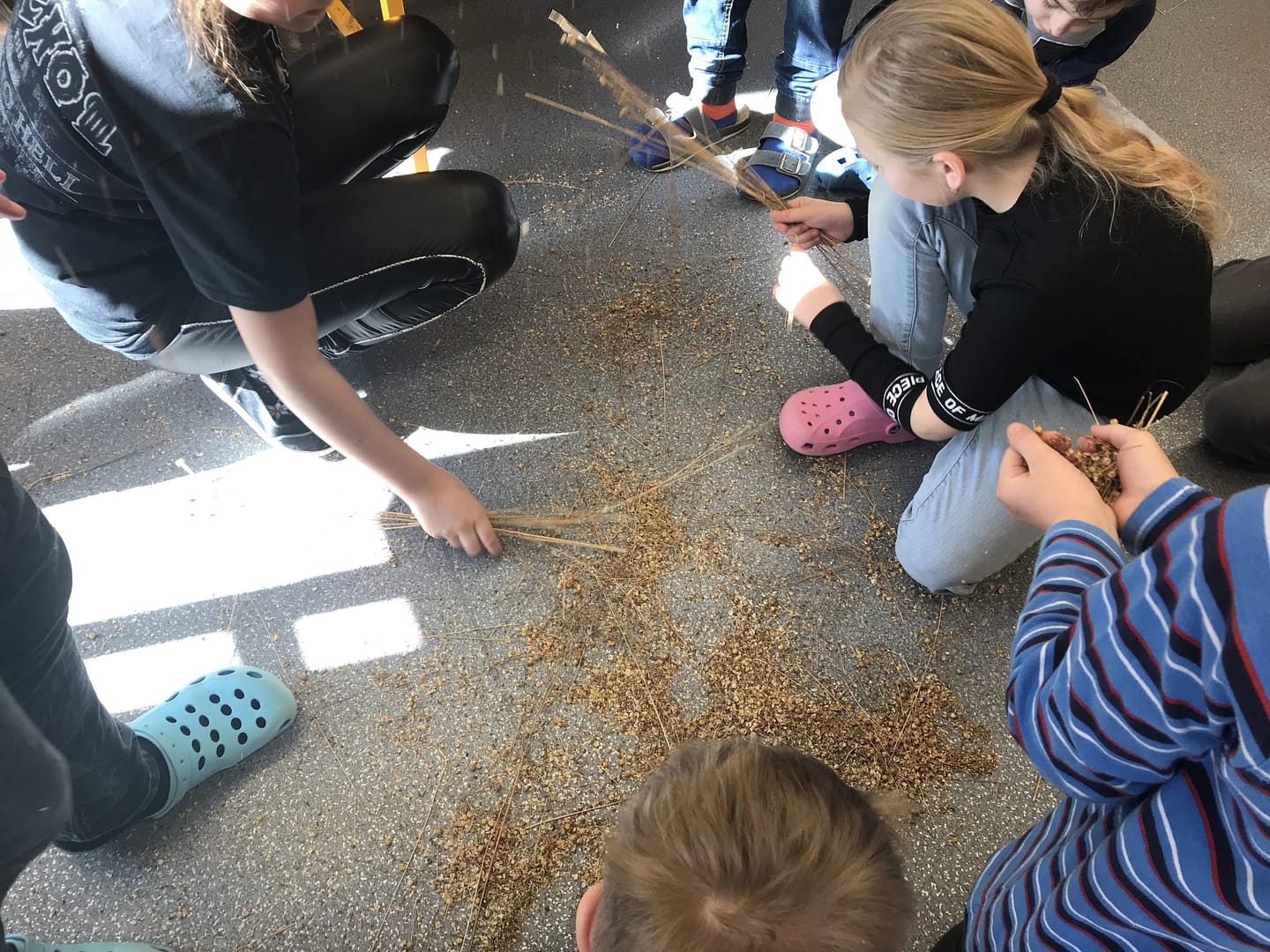 Když jsme měli vyrobeno, mohlo nastat zpracovnání lnu. Drhli jsme, lámali jsme, vochlovali jsme, získali jsme semínka, lněné vlákno a hlavně všude po třídě zametali pazdeří.