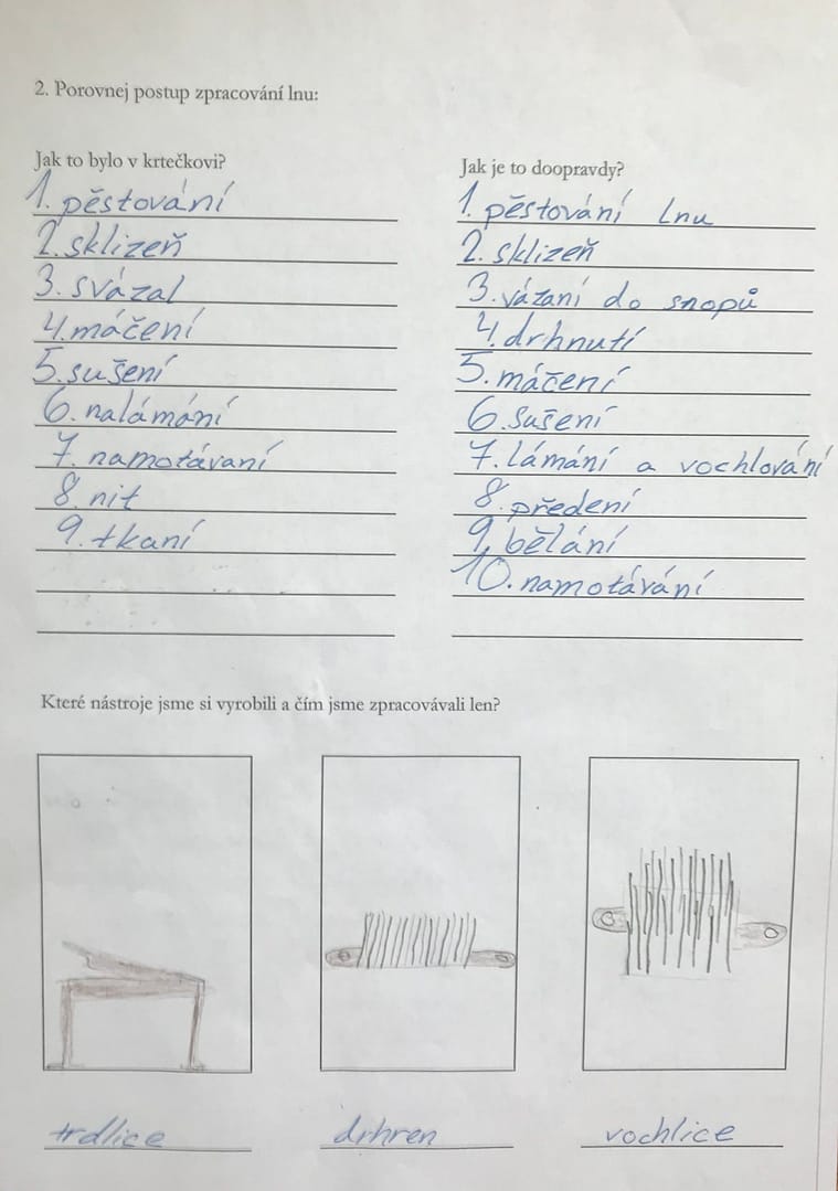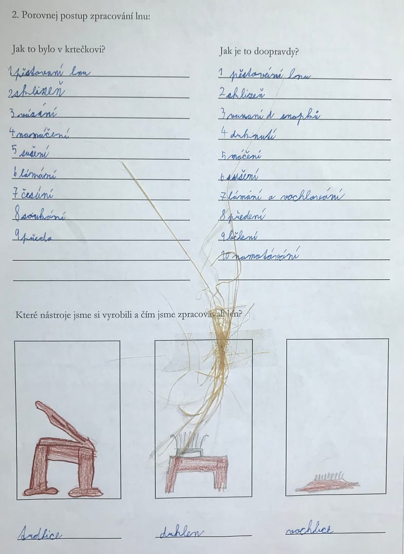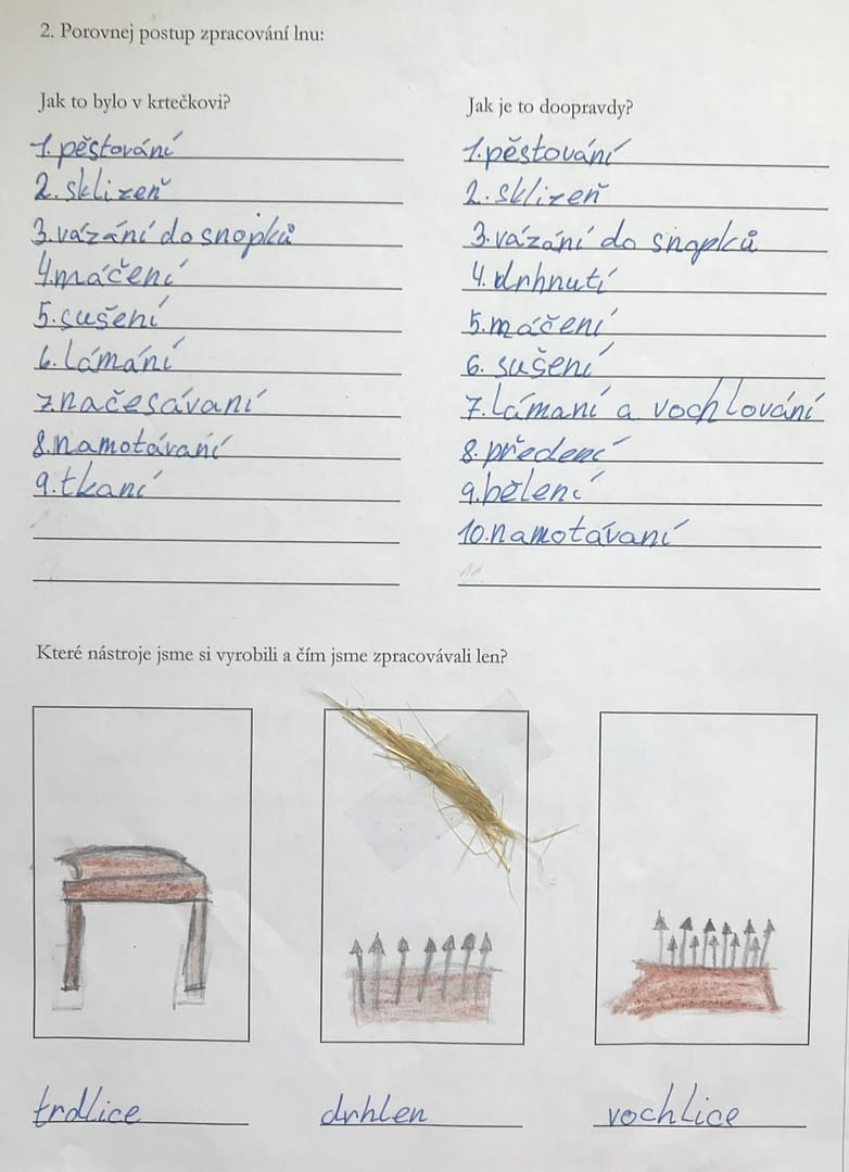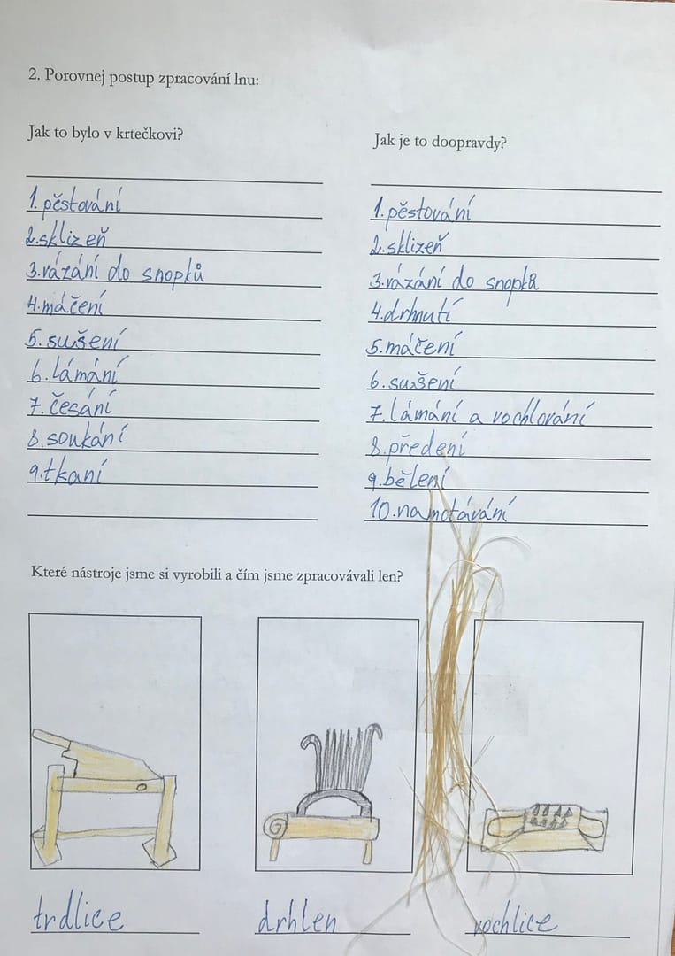 - porovnat pracovní postup při pěstování lnu s pohádkou o Krtečkovi